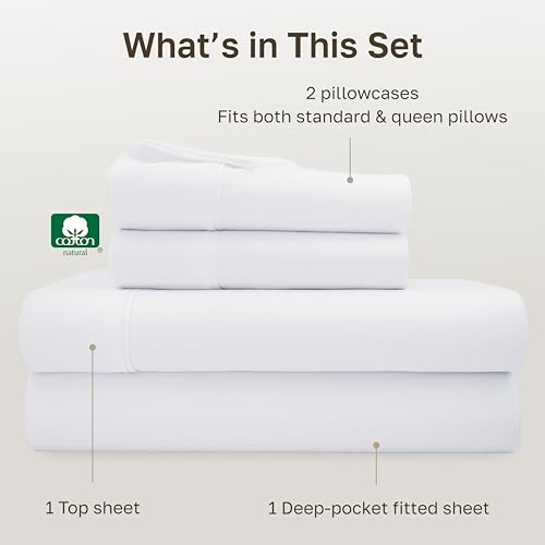 California Design Den Natural 100% Cotton Sheets Queen Size Bed Set - Soft 400 Thread Count Sateen, Queen Sheets, Deep Pockets ...