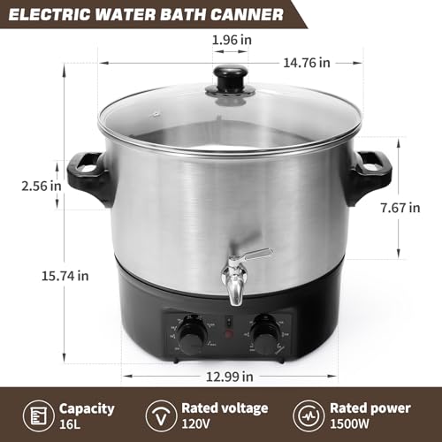 14.5QT Electric Water Bath Canner with Drain Tap Digital Control Adjustable Time and Temperature for Precise Canning,Cooking an...