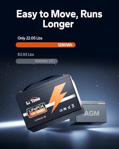 Litime 12V 100Ah(2 Packs) Lithium LiFePO4 Battery, Built-in 100A BMS, 4000-15000 Cycles, 10-Year Lifetime, Perfect for RV , Sola...