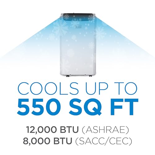 BLACK+DECKER Smart Portable Air Conditioner with Heat, 12,000 BTU Cooling, 9,000 BTU Heating for Rooms up to 550 Sq. Ft., Follo...