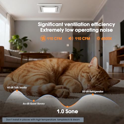 Fitop Bathroom Exhaust Fan with Light , 110 CFM 43W 1200LM Ceiling Mount Shower Ventilation Exhaust with Light , 1.0 Sones Bathro...