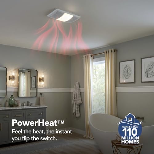 Broan-NuTone BHFLED110 PowerHeat Bathroom Exhaust Fan, Heater, and LED Light Combination, 110 CFM