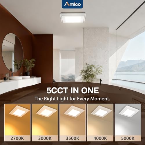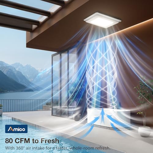 Amico Bathroom Exhaust Fan with Light, 80 CFM, 0.9 Sones, 1000LM, 5CCT, Easy Install, Ceiling Mount Shower Bathroom Fan, Adjust...
