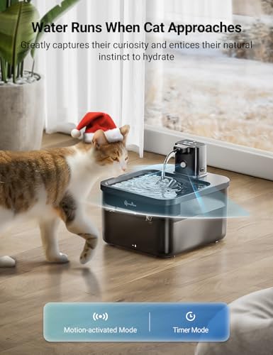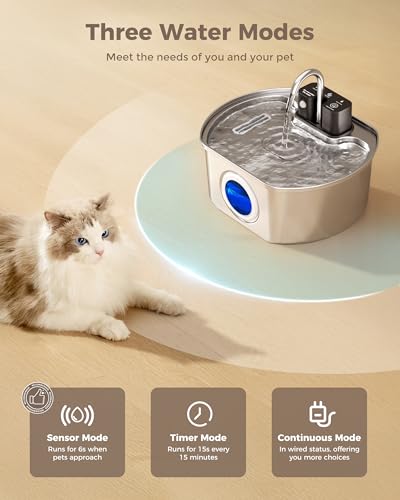 Wireless Cat Water Fountain [Water & Battery Separation] FEELNEEDY Stainless Steel Automatic Pet Water Dispenser, 4000mAh Batte...