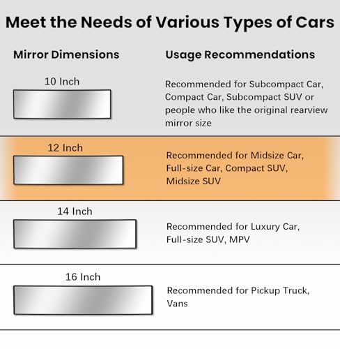 HmmtyRack Rear View Mirror, Chrome Anti-glare Panoramic Rear Mirrors Universal 12 Inch Convex Car Interior Clip on Extra Big Wi...