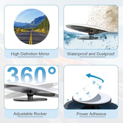 Blind Spot Car Mirror 2 Pack-2 Inch Round Rear View Convex Mirrors for Cars/SUVs/Motorcycles/Trucks/Trailers/Snowmobiles/Bicycl...