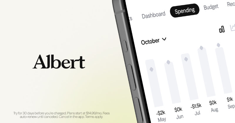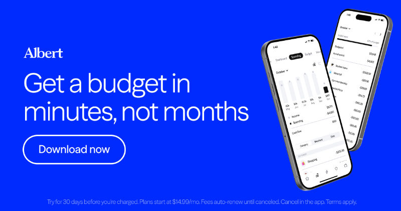 Albert is not a bank. Banking services are provided by Stride Bank, N.A. and Sutton Bank, Members FDIC. Albert plans range from $14.99-$39.99. Try for 30 days before you're charged. Fees auto-renew until canceled. Cancel in the app. Terms apply. Funds in Albert Cash are held at Stride Bank, N.A. or Sutton Bank. Funds in Albert Savings accounts are held at Wells Fargo, N.A. Member FDIC. Cash and Savings account funds are eligible for FDIC insurance up to $250,000 per depositor, per FDIC insured bank, per ownership category and pass-through FDIC insurance is subject to specific conditions being satisfied. Deposit insurance covers the failure of an insured bank. Download to see if you qualify for Albert Instant Advance. Limits start at $25. Not all will qualify and few qualify for $1,000. Transfer fees may apply. See app for repayment terms. No Albert plan required for Instant. Cash back rewards are subject to terms. Albert Investing accounts are not FDIC insured or bank guaranteed and involve the risk of loss, including the loss of principal. Investment advisory services are provided by Albert Investments, LLC. Brokerage services are provided by Albert Securities, LLC, Member FINRA/SIPC.
