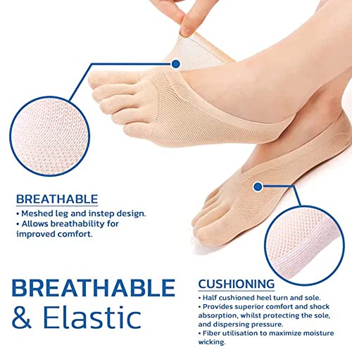 Qauxbul 5 Pairs Sock Align Toe Socks for Bunion, No Show Low Cut Five Finger Orthopedic Compression Socks For Women (Toe Socks-...