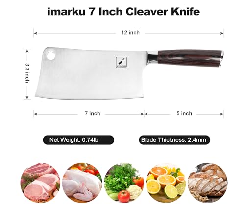 imarku Cleaver Knife 7 Inch Meat Cleaver - Japan High Carbon Stainless Steel Butcher Knife with Ergonomic Handle, Ultra Sharp C...