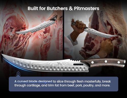 SYOKAMI Butcher Breaking Knife for Meat Cutting, 10.5 Inch Japanese Style Curved Carving Knife with Wooden Full Tang Handle, Da...