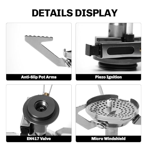Odoland 3500W Windproof Camp Stove Camping Gas Stove with Fuel Canister Adapter, Piezo Ignition, Carry Case, Portable Collapsib...