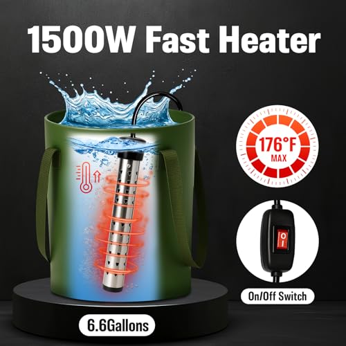 Portable Shower for Camping, 6000mAh Rechargeable Camp Shower Pump with Immersion Water Heater, 6.6 Gal Foldable Bucket, 4 Spra...