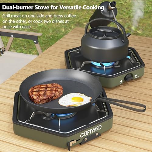 Cofiyard Propane 2-Burner Camping Stove with Carrying Bag and Gas Stove Pressure Regulator, Camping Essentials Folding Camp Sto...