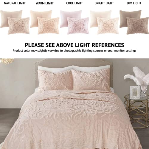 Madison Park Laetitia Lightweight 100% Cotton Quilt Set, Breathable Chenille Tufted, Shabby Chic Boho Medallion Design, Sham, F...