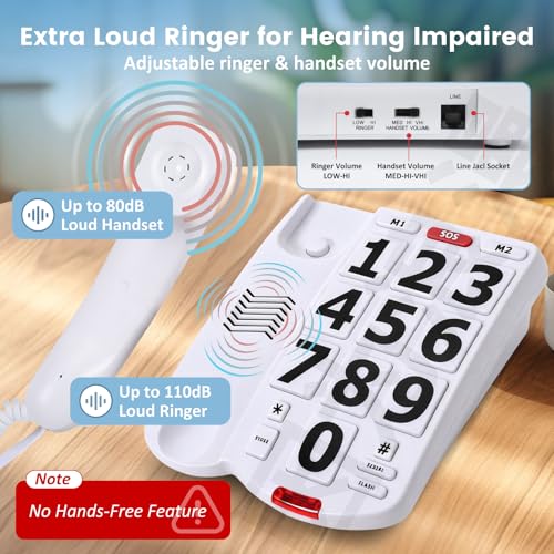 Large Button Phones for Seniors, Land Line Phones for Elderly - Big Button Home Telephone for the Visually Impaired, 110dB+ Amp...