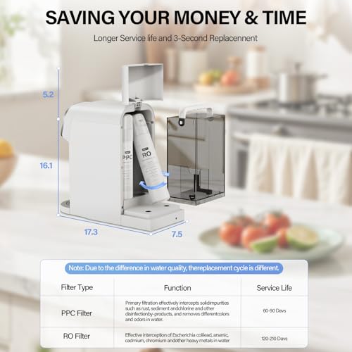 Aigerri Portable Countertop Reverse Osmosis Water Filter with UV, 5-Stage RO Filtration System, No Installation Needed, 5:1 Pur...