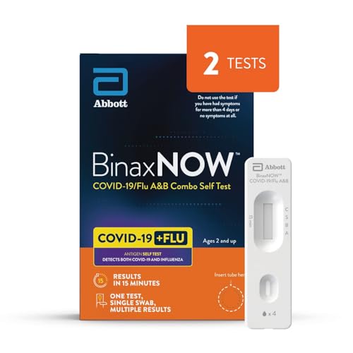 BinaxNOW COVID-19/Flu A&B Combo Self Test, Reliable COVID/Flu Home Test With 15 Minute Results, 2 Tests
