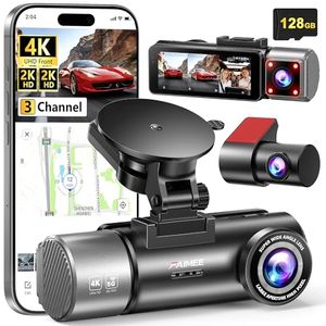 4K+2K+2K 3 Channel Dash Cam Front and Rear, 128GB Card Included, Dash Camera for Cars 5.8G/2.4G Dual Wifi, Built-in GPS, Night ...