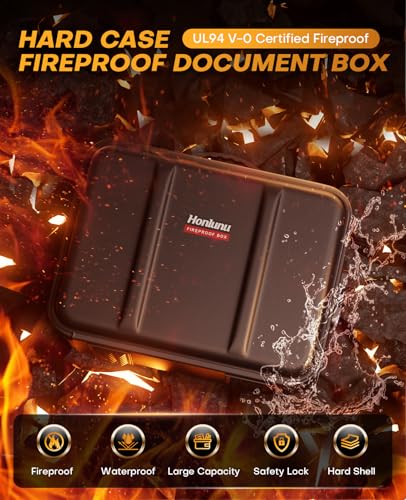 Honlunu Fireproof Document Box, Hard Case Fireproof Document Organizer with Lock, Water Resistant Safe Box for Important Docume...