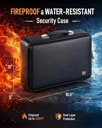 DocSafe Document Bag with Lock,Fireproof 3-Layer File Storage Case with Water-Resistant Zipper,Document Safe Portable Travel Ho...