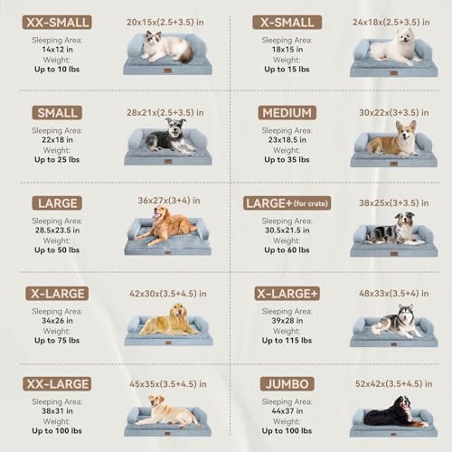 JOEJOY Orthopedic Dog Beds Large Sized Dog, XL Egg-Crate Memory Foam Pet Couch Bed with Bolster Sides, Waterproof Lining, Remov...