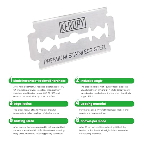 KEROPY Double Edge Safety Razor Blades-50 Count Premium Razor Blades, Surgical Stainless Steel with Chromium Coating&3X Sharper...