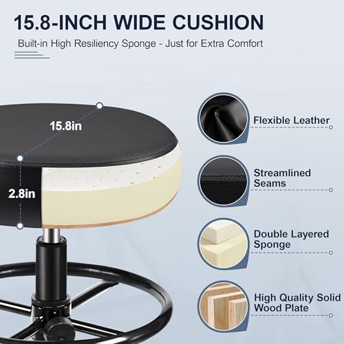 Brick Attic Drafting Chair with Backrest – Adjustable Foot Rest Rolling Stool with Wheels, PU Leather Swivel Stool for Office S...