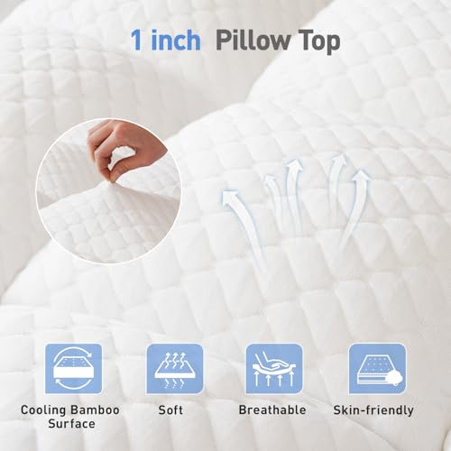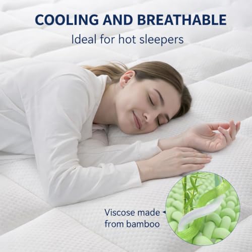 Ultra Soft Queen Size Mattress Topper - Viscose Made from Bamboo Pillow Top Mattress Pad for Back Pain Relief - Naturally Cooli...