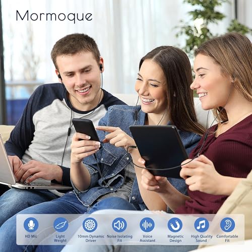 MORMOQUE EP-06 Wired Earbuds in-Ear Earphones,Build-in Microphone Noise Isolating Headphones,3.5mm Jack 4.9ft Long Cord Ear Bud...