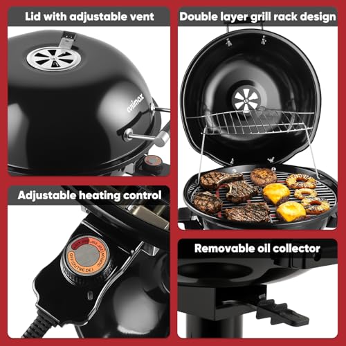 Charbroil 3-in-1 Dual Fuel Outdoor Bistro Pro Electric Grill & Griddle + Charcoal Mode BBQ, Black - 25302145