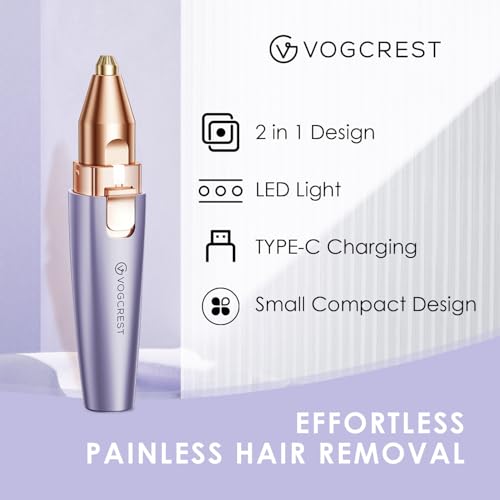 VG VOGCREST Eyebrow Facial Trimmer: 2 in1 Rechargeable Facial Hair Removal and Eyebrow Shaver - Face Lips Body Painless Facial ...