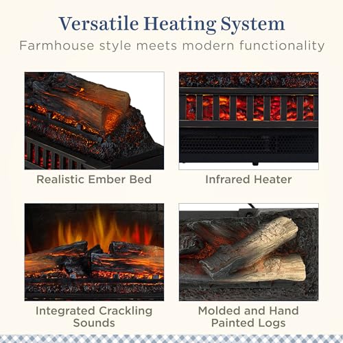 Country Living Electric Fireplace Logs, 27” LED Electric Fireplace Inserts with Infrared Heater, Electric Heater Heats up to 10...