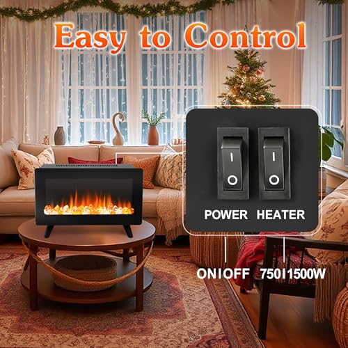 Electric Fireplace Heater for Indoor Use, 1500W/750W Space Heater Fireplace with 3D LED Flame, Double Safety Protection, Portab...