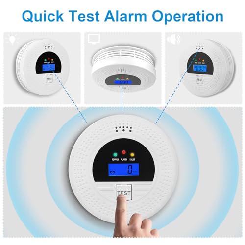 2 in 1 CO & Smoke Alarm,Carbon Monoxide Detectors, with Battery, Smoke Detector,85dB in Alarm,for Home and Kitchen,LCD Screen,E...