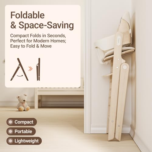 MAMAZING GrowPod Pro Wooden High Chair, Foldable Baby High Chair with 5-Point Safety Harness, Dual Tray System, Adjustable Seat...