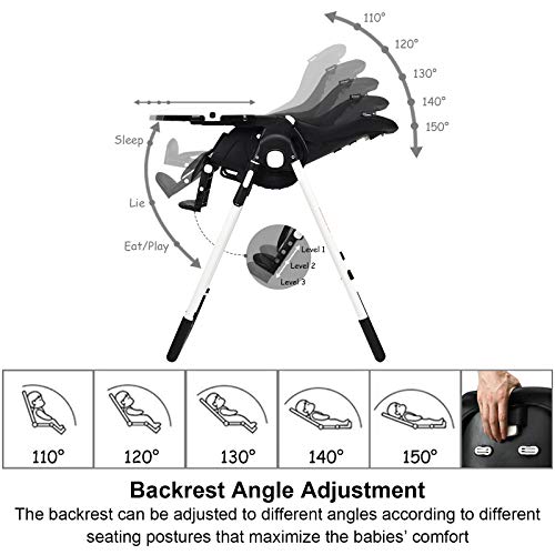 Baby High Chair for Toddler, Foldable High Chair for Dining Table Highchair with 5 Point Harness Seat Removable Adjustable Tray...
