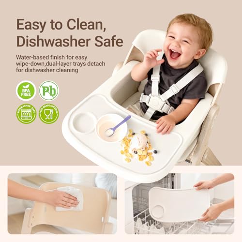 Funny Supply Foldable High Chair, Space-Saving Portable Baby High Chair with Removable Double Tray, Modern Convertible Baby Fee...