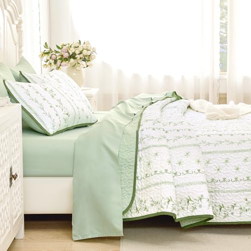 akkialla Queen Quilt Bedding Set,Olive Green Ultrasonic Full/Queen Quilt Set,Lightweight Soft Bedspread Coverlet,Modern Style C...