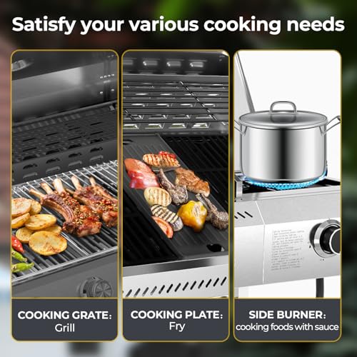 Electactic G41 Gas Grill,4-Burner Gas BBQ Grill with Side Burner, Porcelain-Enameled Grills, 42,000 BTU Stainless Steel Propane...