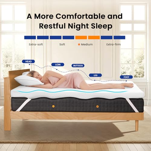 Czpalo 3 Inch Gel Memory Foam Mattress Topper Queen, Cooling Mattress Topper with Removable & Washable Bamboo Cover, CertiPUR-U...