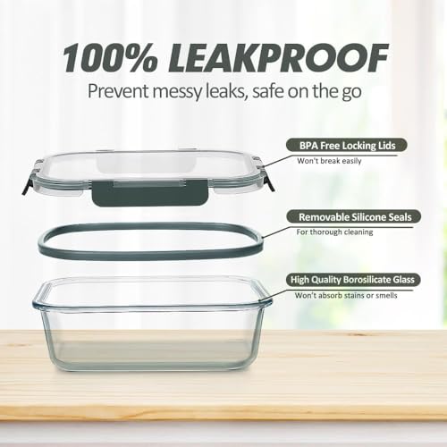 HOMBERKING 10 Pack Borosilicate Glass Meal Prep Containers with Locking Lids, Glass Food Storage Containers Set, Airtight Lunch...