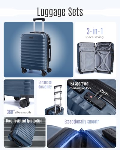 LIGHT FLIGHT Luggage Sets, 3 Piece Durable Suitcase Set with Spinner Wheels, 3 Pcs Hard Shell Lightweight Luggage with TSA Lock...