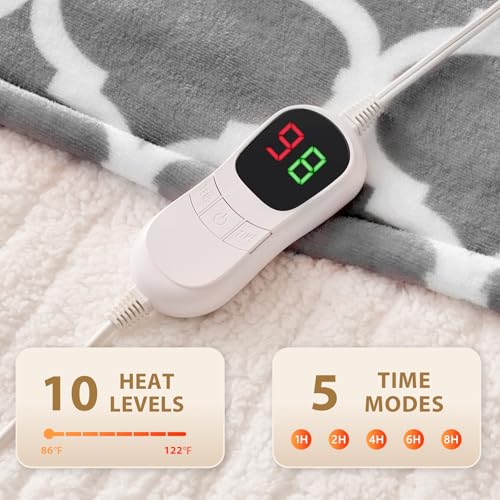 Homemate Heated Blanket Electric Throw - 50“x60“ Heating Blanket with 10 Fast Heat Levels 8 Hours Auto Off Soft Cozy Flannel Ov...