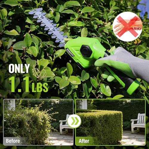 SUNCHERS 20V Max Hedge Trimmer Cordless, 22 Inch Tree Trimmer with 2 Batteries and Charger, Handheld Electric Trimmers, Grass S...