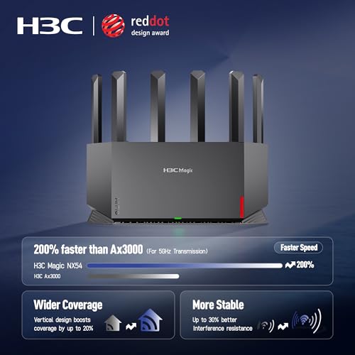 H3C AX5400 WiFi 6 Router for Wireless Internet(NX54), High Speed Gaming Routers for Whole-Home,Long Range Coverage Computer WiF...