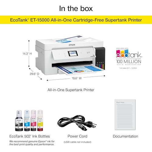 Epson EcoTank ET-15000 Wireless Color All-in-One Supertank Printer with Scanner, Copier, Fax, Ethernet and Printing up to 13 x ...