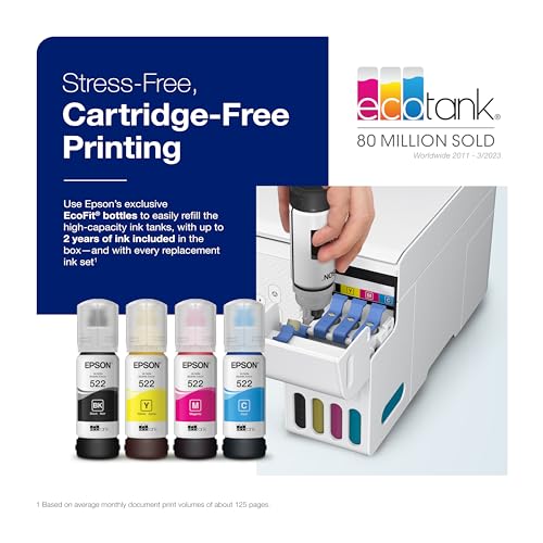 Epson EcoTank ET-4800 Wireless All-in-One Cartridge-Free Supertank Printer with Scanner, Copier, Fax, ADF and Ethernet – Ideal-...