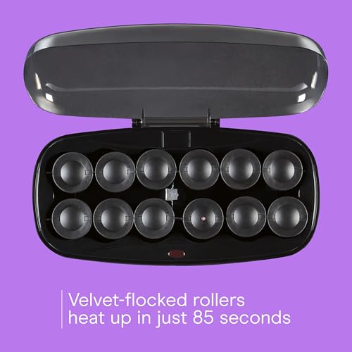 Conair Hot Rollers for Long, Medium & Short Hair, 12 Ceramic Flocked 1½-Inch and 1¾-Inch Heated Hair Rollers with Clips, Hot Cu...