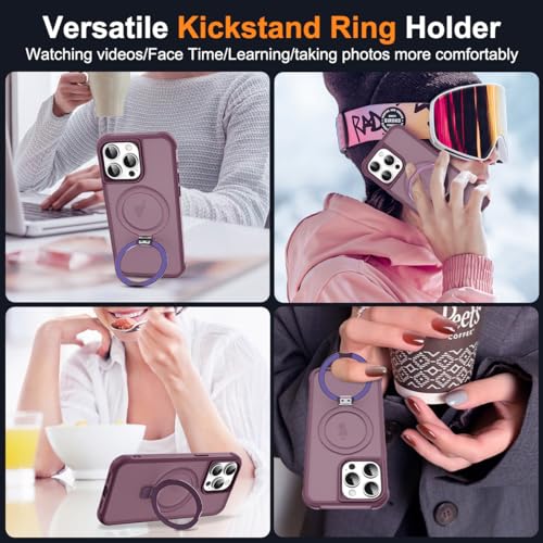 SKYLMW Compatible with iPhone 13 Pro Case with Invisible Magnetic O-Ring Stand Military-Grade Translucent Case for iPhone 13 Pr...