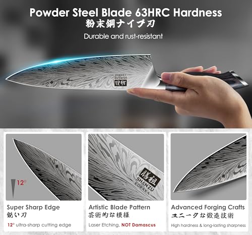 SHAN ZU 16 Pieces Knife Set, Knife Block Set in Powder Steel, Ultra Sharp Kitchen Knives Set, High Hardness Japanese Knife Set ...